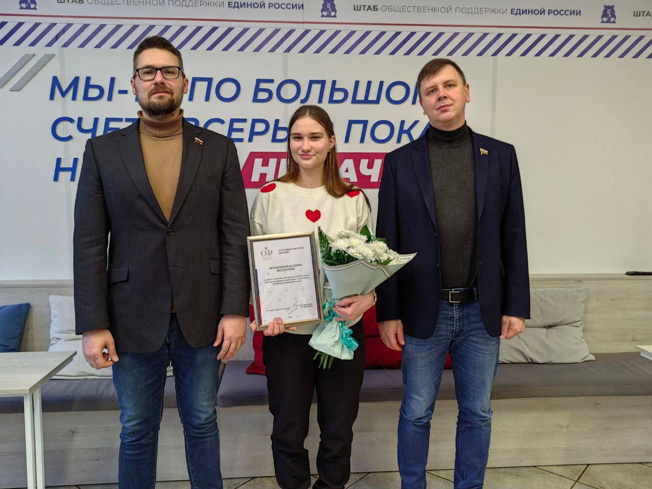 Смоленские сенаторы Артем Малащенков и Руслан Смашнев передали юному герою благодарственное письмо Совета Федерации, отметив смелость и решительность жителя нашего региона.