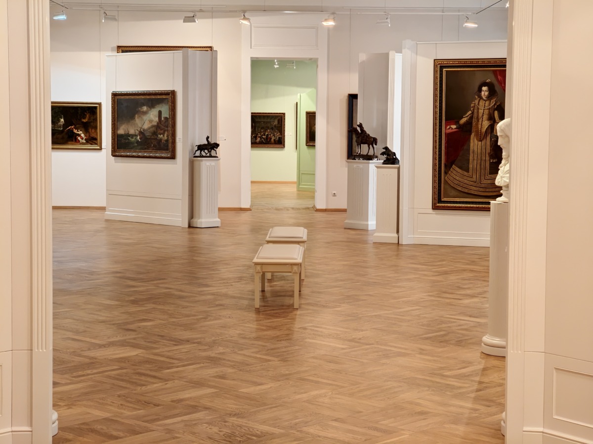 Полностью изменил интерьер отреставрированный пол в залах Галереи. Было восстановлено изношенное покрытие паркета общей площадью 1600 квадратных метров в 15 залах музея.