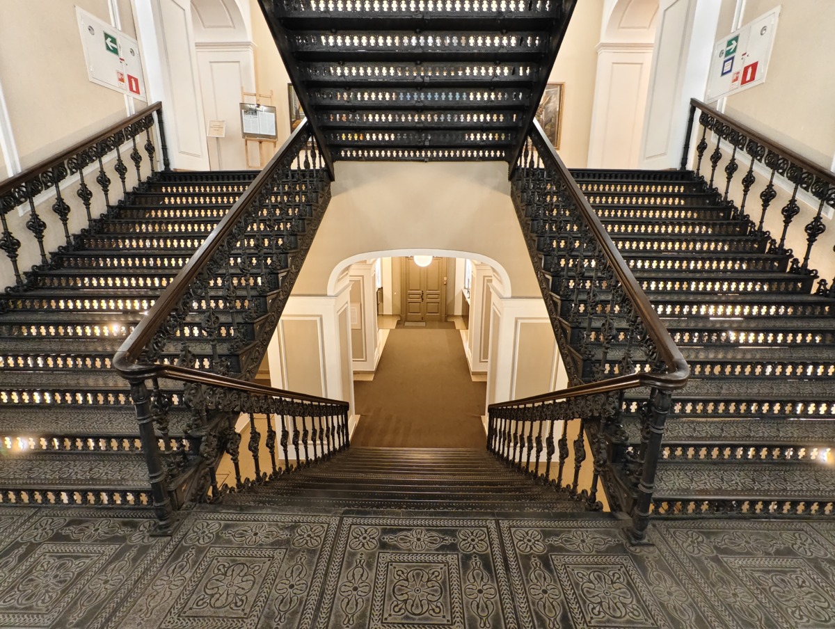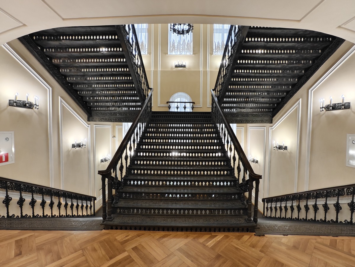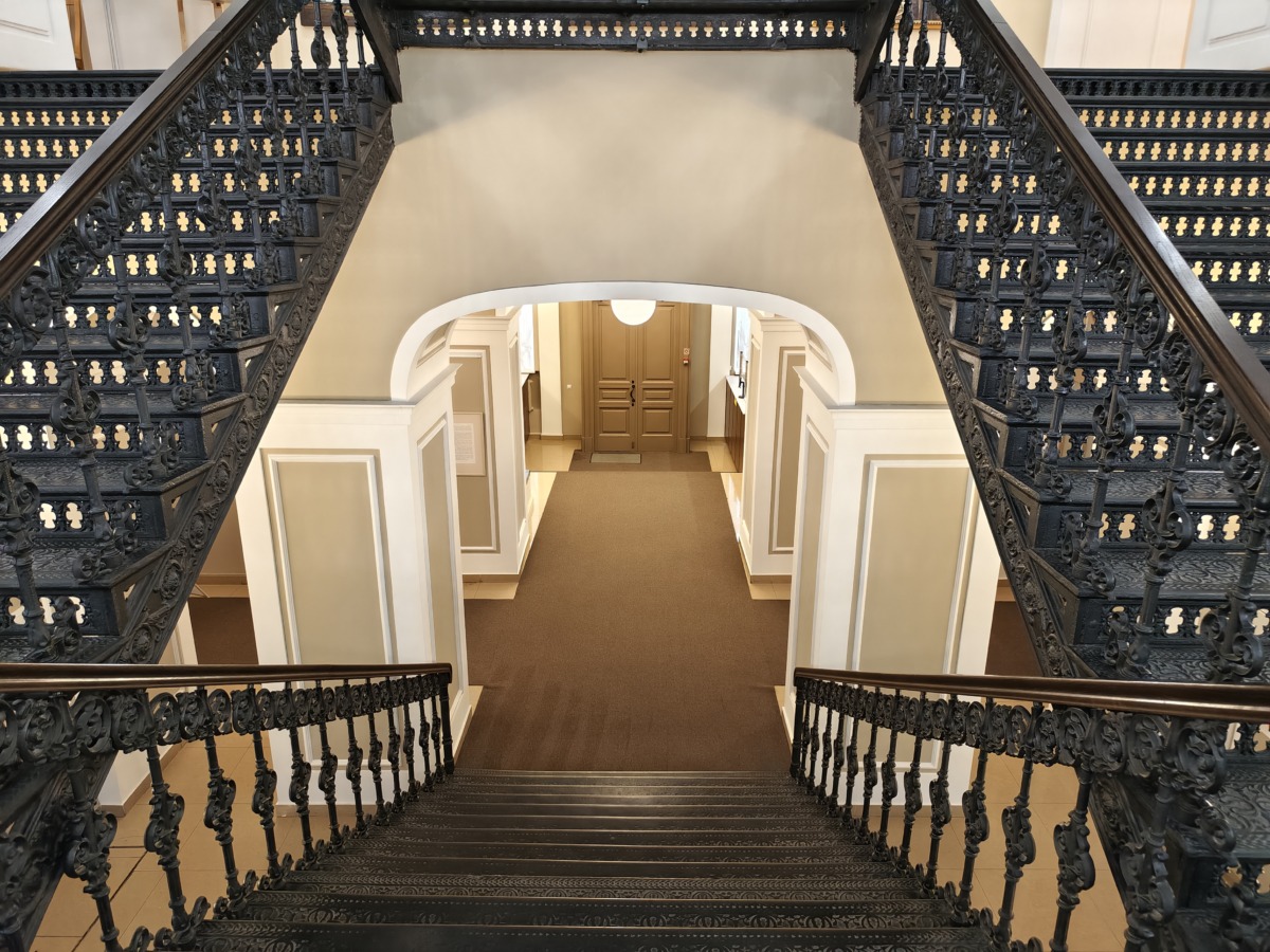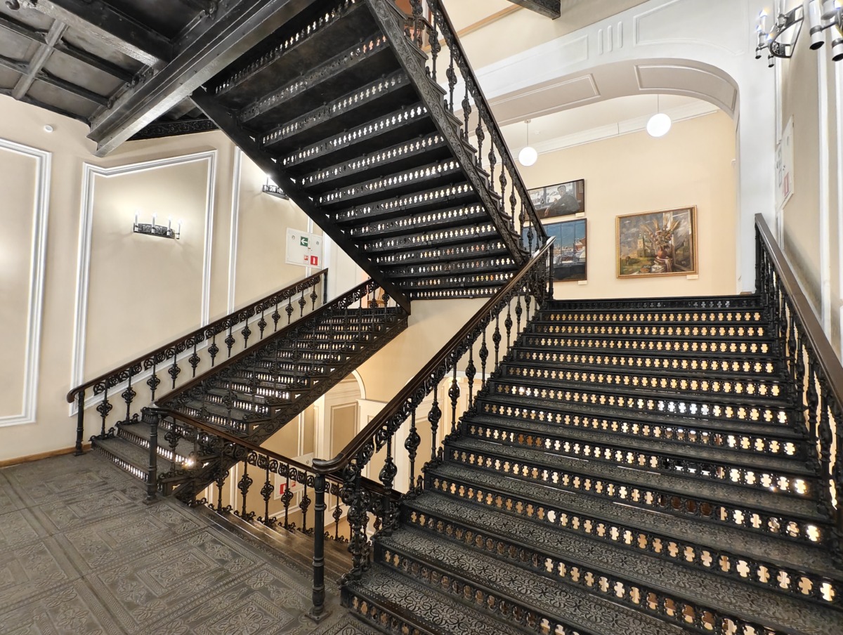 «В годы войны здание выгорело, были обрушения перекрытий, не уцелели фрагменты лестницы, но мастера уже в наши дни восстановили. Сейчас эта лестница имеет приближенный к первозданному вид», – объяснила Дарья Иванова.