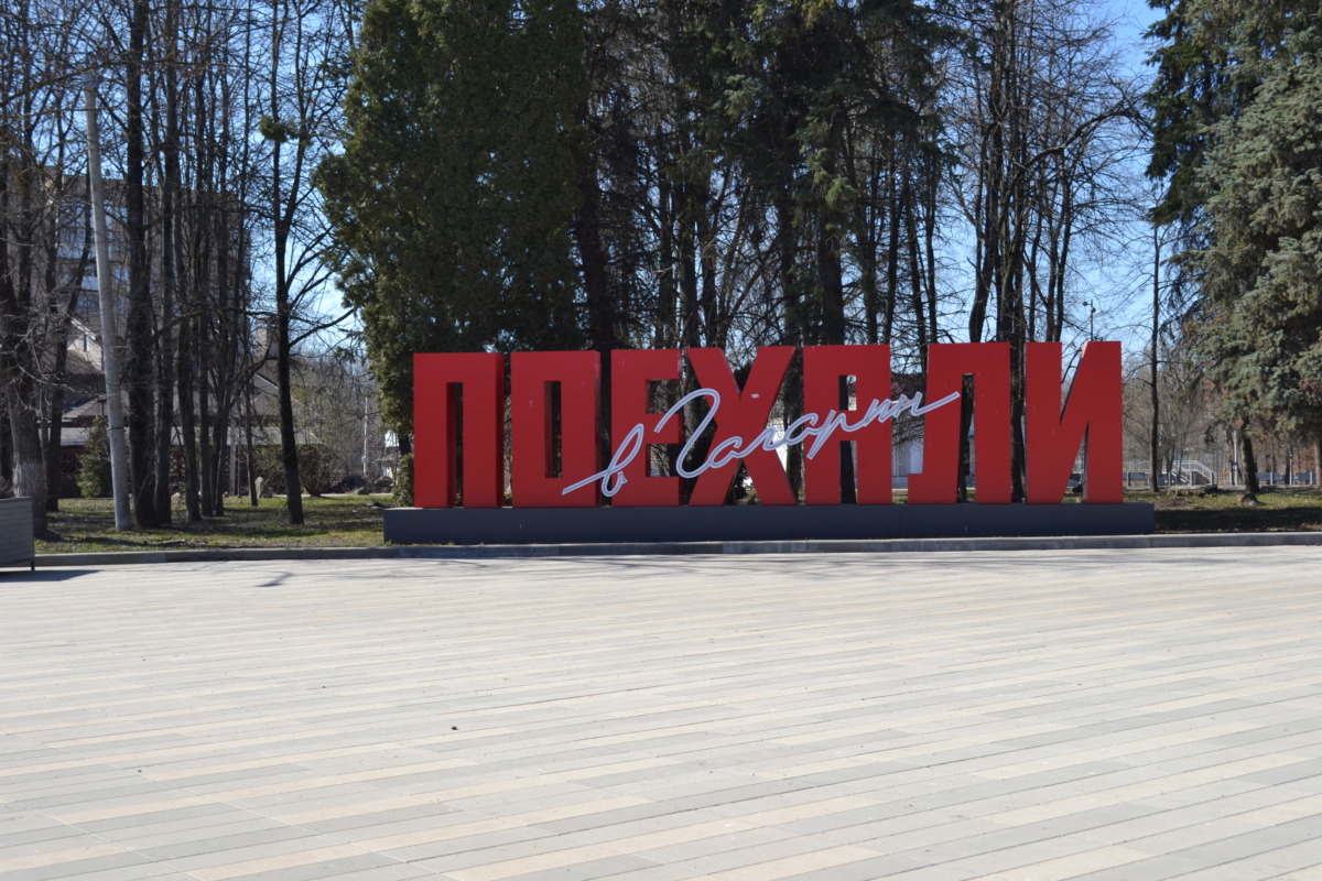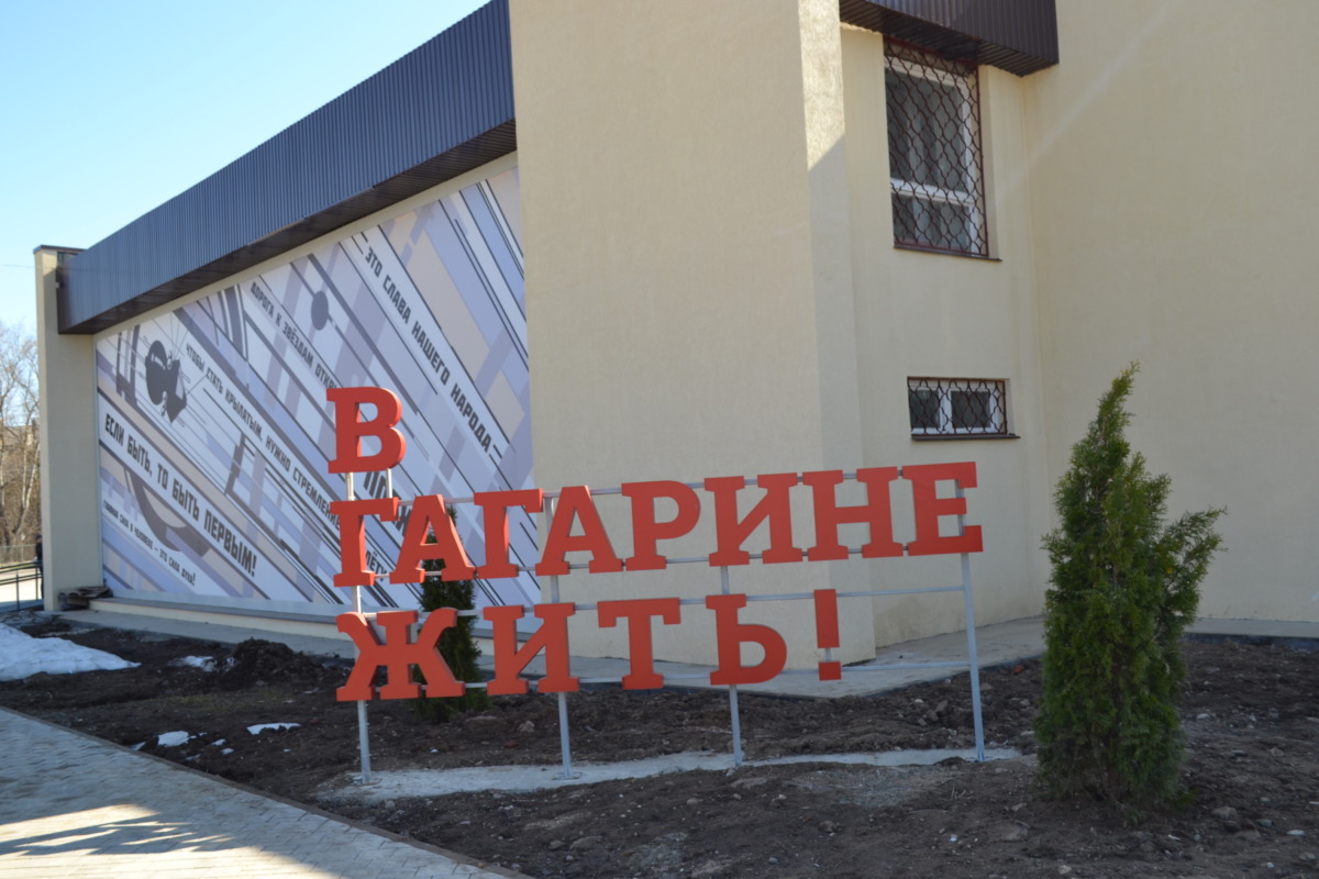 Очень символично выглядит малая скульптурная форма у здания ТИЦ: «В Гагарине жить!». Еще несколько лет назад главной рекламой у двух расположенных рядом вокзалов – автобусного и железнодорожного – были баннеры с рекламой ритуальных услуг. А сегодня гостей города встречает современный объект и благоустроенная территория. Кстати, в Гагарине делает остановку каждый поезд – ни один не проходит мимо.