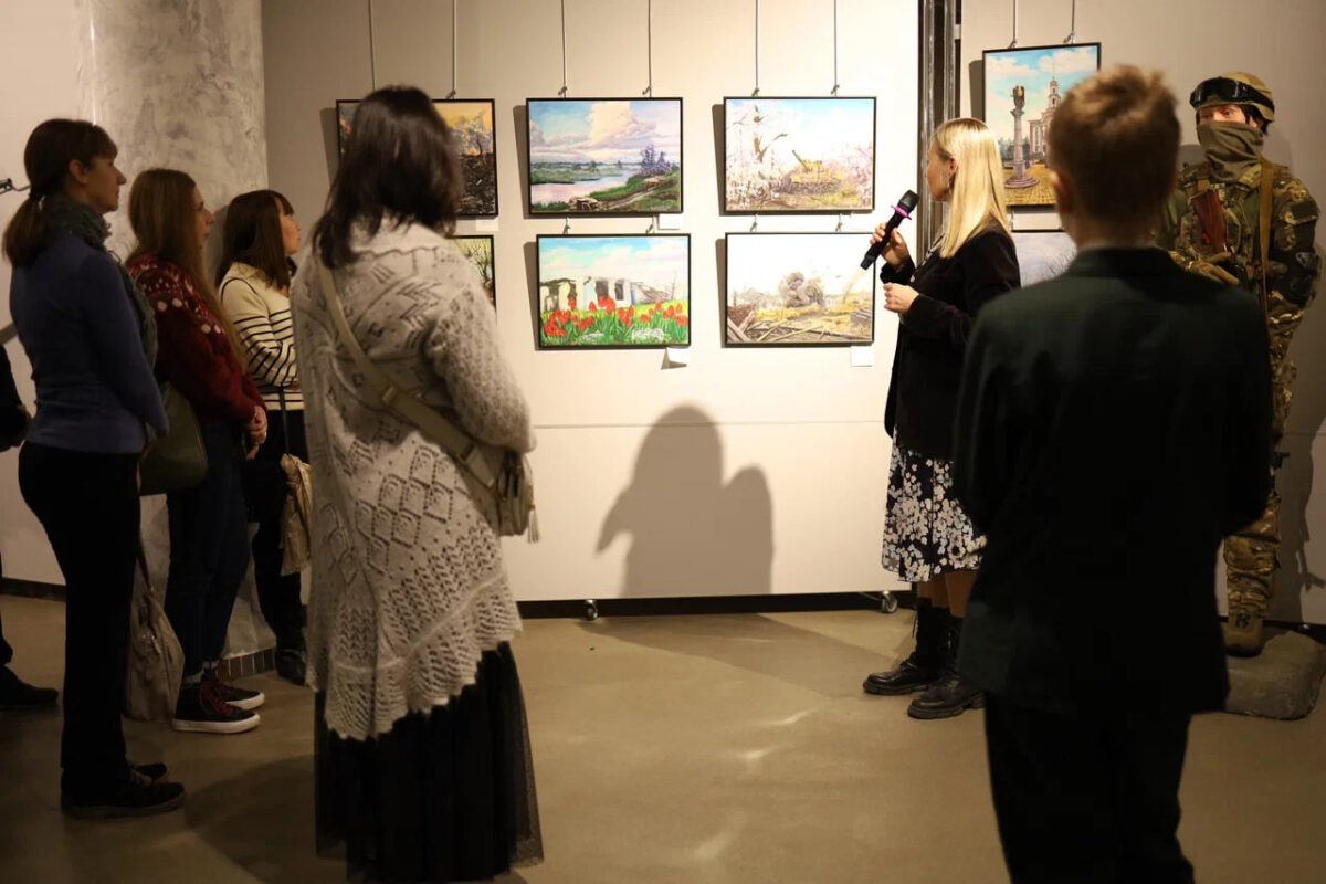 Отдельный эмоциональный пласт – работы подмосковного художника Вячеслава Котова, посвященные событиям на Украине. Вячеслав Котов начал писать маслом в 2004 году. В мирной жизни в основном писал пейзажи и натюрморты. С 2023 года ушел добровольцем в зону СВО, где продолжает служить по настоящее время, совмещая ратные подвиги с художественным творчеством. Вячеслав воевал под Донецком, Авдеевкой, Торецком, Красноармейском (Покровском). Его работы были любезно предоставлены для оформления выставки.