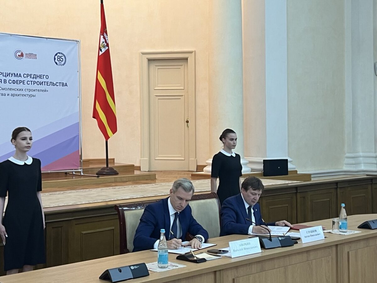 14 октября состоялись пленарное заседание и подписание соглашения между НОСТРОЙ и правительством Смоленской области. Президент Национального объединения строителей Антон Глушков и губернатор Смоленской области стали ключевыми спикерами. В мероприятии приняли участие первый заместитель Министра строительства и ЖКХ РФ Александр Ломакин, представитель Министерства образования Республики Беларусь Александра Петрова, руководители органов исполнительной власти, учреждений СПО, саморегулируемых организаций. Свыше ста делегатов из 32 регионов страны обсуждали важные вопросы модернизация системы подготовки кадров для сферы строительства.