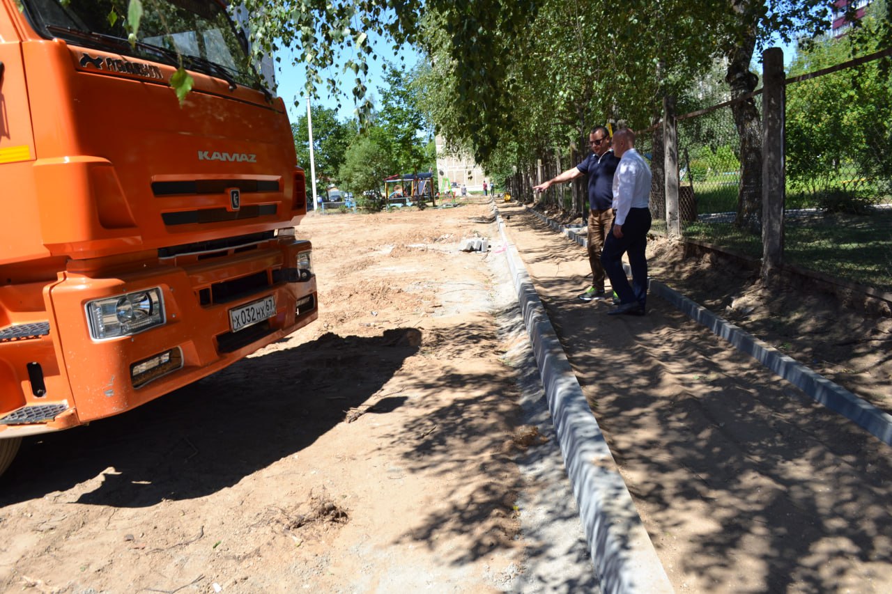 Одновременно с обсуждением «плюшек» для туристов мы с Владимиром Груниным заехали на улицу Строителей, где в рамках проекта «Комфортная городская среда» посмотрели на степень готовности сразу двух объектов. Дворовой территории возле детского сада и сквера, расположившегося поблизости от торгового центра.