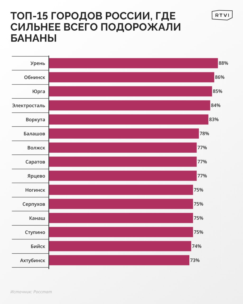 Смоленская область также засветилась в «банановом» рейтинге. Ярцево занимает девятое место в топ-15 городов, где значительно взлетели цены на это тропическое лакомство, рост составил 77%.