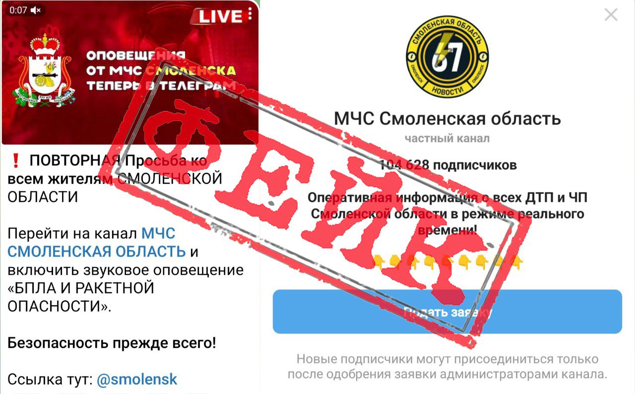 «Главное управление МЧС России по Смоленской области не имеет никакого отношения к этому каналу. Не позволяйте мошенникам вводить вас в заблуждение!».