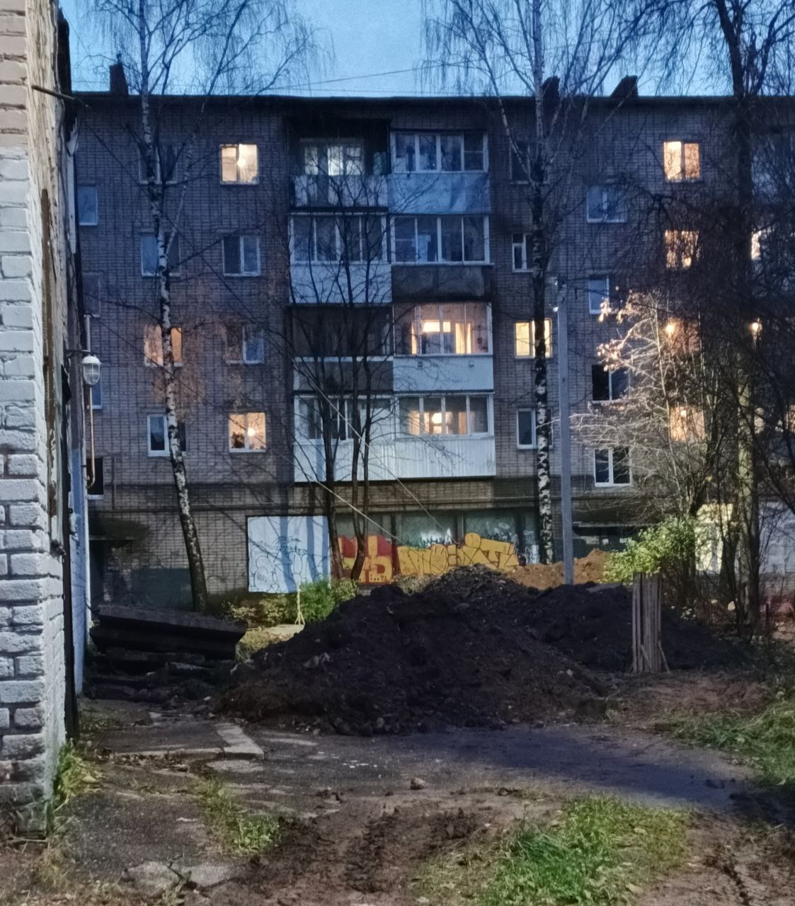 «Двор глухой. Порой обойти всё это безобразие сложно. И летом, и зимой – одно и то же. 10 лет назад мы еще над этим шутили, мол, ребята клад ищут. Но ситуация не меняется, особенно она накалилась в этом году. Экскаватор, откапывая очередной кусок земли, повредил кабель, и три дома остались без электричества (№2, 2а, 4). Через сутки восстановили… На днях яма разрослась, что даже не только деревья во дворе, посаженные жильцами (ели, клены и амурская сирень) выдраны из земли, уже и детская площадка превратилась в хлам, будто на нее ракету сбросили», — обращается в адрес смоленских властей Нинэль.