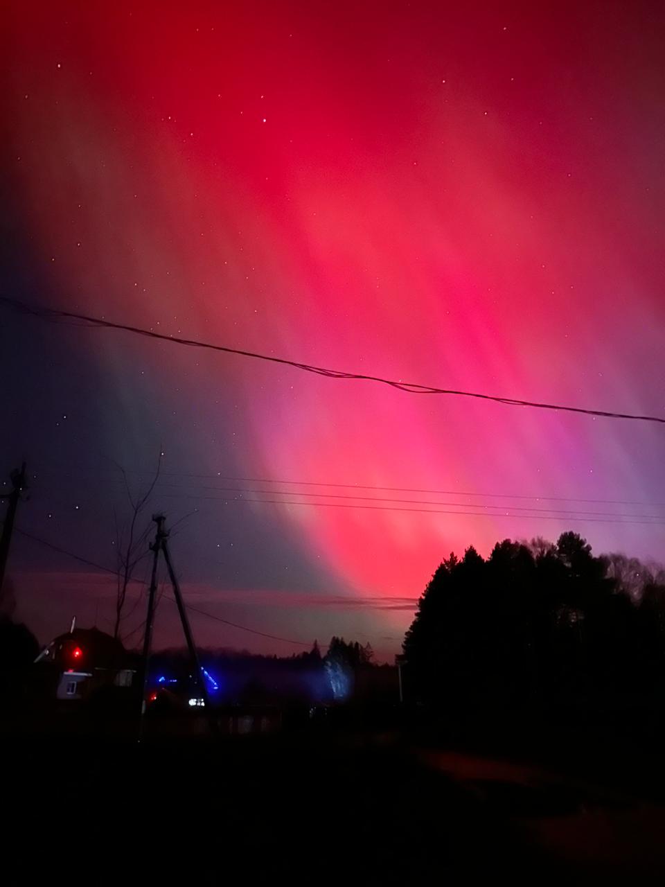 Небо над средней полосой России озарилось северным сиянием