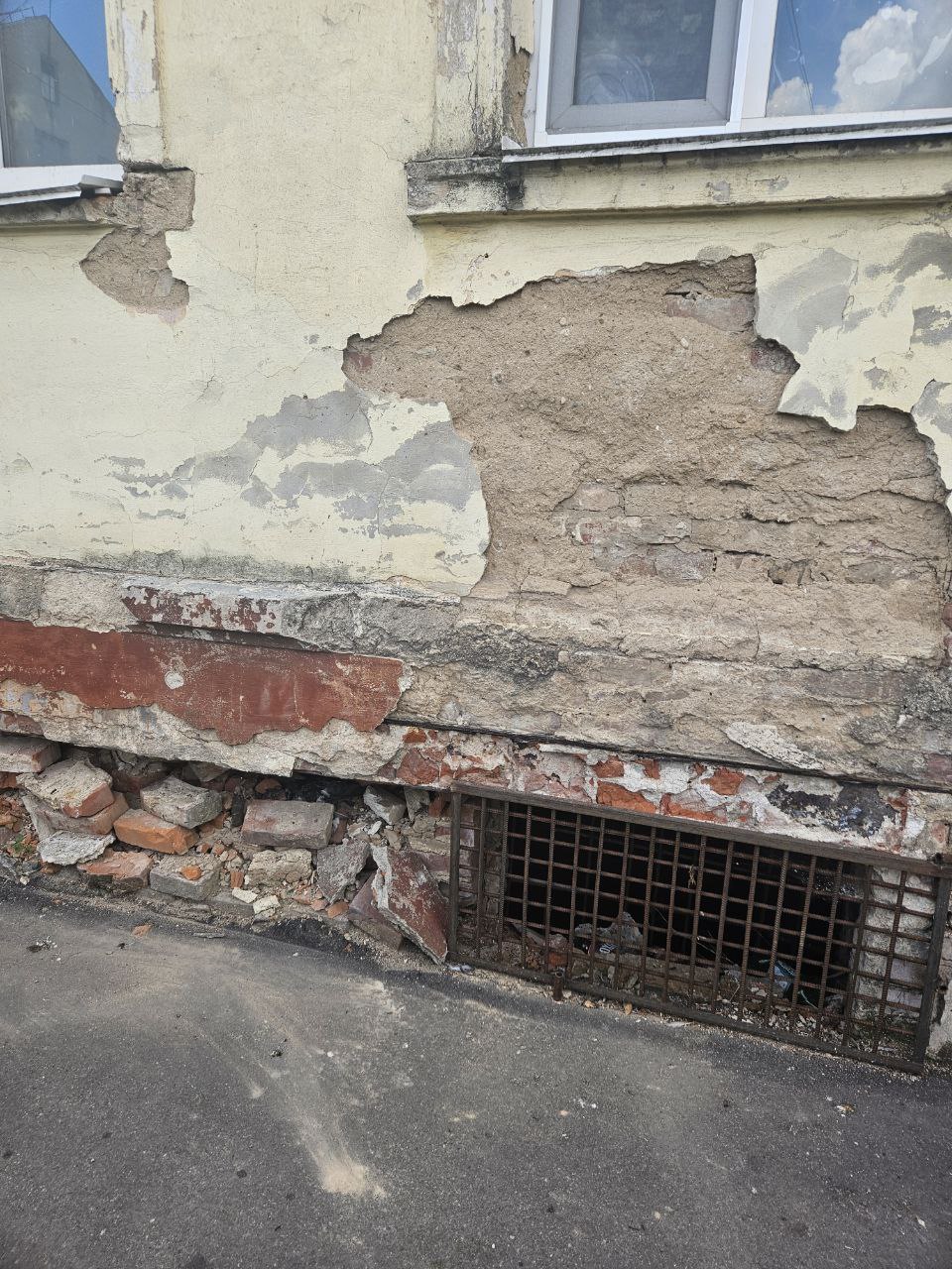 В здании вплоть до кирпичей осыпалась штукатурка, а по стенам пошли трещины и образовалась плесень.