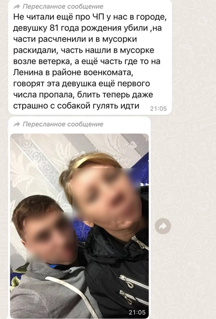 Все комментаторы утверждают, что женщину убили и действительно расчленили. Это сделал некий мужчина, чье фото также публикуют в сети. Когда произошло зверское убийство и по каким причинам, местные жители теряются в догадках. Кто-то рассказывает, что женщину якобы звали Оксаной, она проживала на улице Ленина райцентра, у нее осталась несовершеннолетняя дочь. Погибшая работала уборщицей в супермаркете.