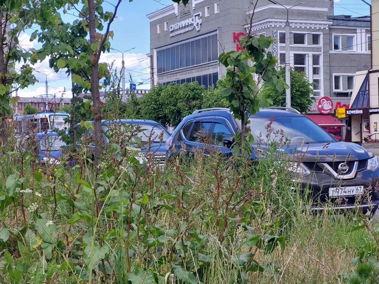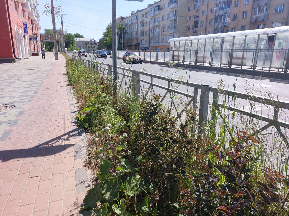 Наши читатели сообщили редакции, что центральные улицы Смоленска утопают в траве: