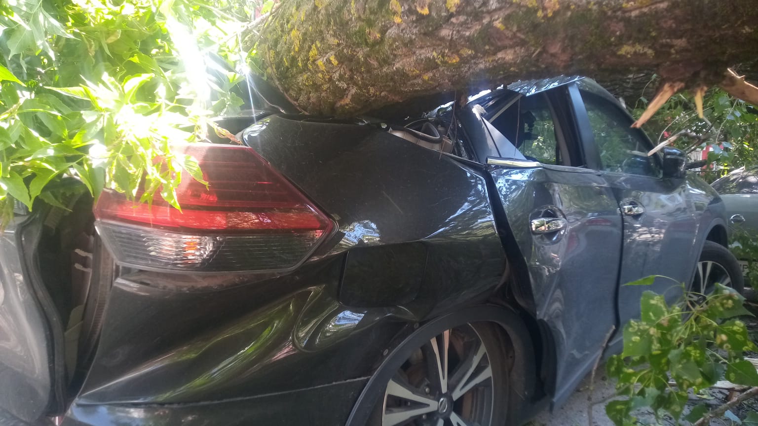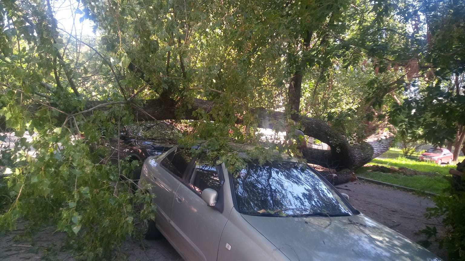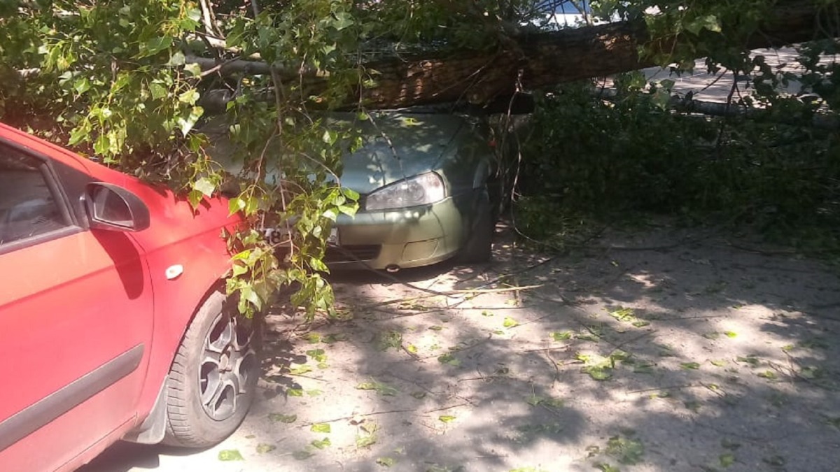 Мощное дерево повредило три автомобиля, припаркованные рядом.