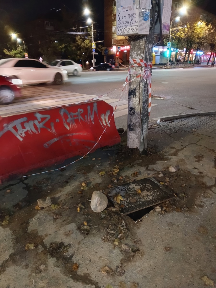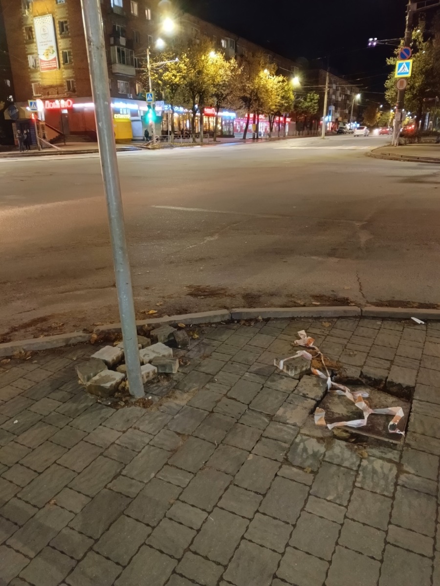 «Перекресток улица Багратиона – улица Нахимова. Переустанавливали светофоры. Оставили мусор, ямы в асфальте, вывороченную плитку. Кто всё это будет приводить в порядок?».