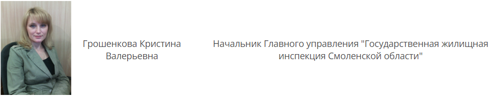 Начальник государственной жилищной инспекции Смоленской области Кристина Грошенкова покидает свой пост с 26 декабря. Соответствующее распоряжение подписал губернатор Василий Анохин – с пометкой «по собственной инициативе».