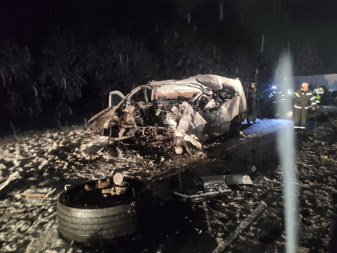 Стали известны подробности аварии, произошедшей накануне вечером в Вяземском районе Смоленской области. Около 18:35 на 210 километре автодороги М-1 «Беларусь» 48-летний водитель за рулем DAF с полуприцепом Krone не учел дорожно-метеорологические условия и не справился с управлением. Фура влетела в ограждение, а затем выехала на «встречку», где столкнулась с Mercedes-Benz Vito под управлением 54-летнего водителя. Шансов выжить у мужчин не было – удар был достаточно мощным. Судя по кадрам, иномарка превратилась в груду металла.