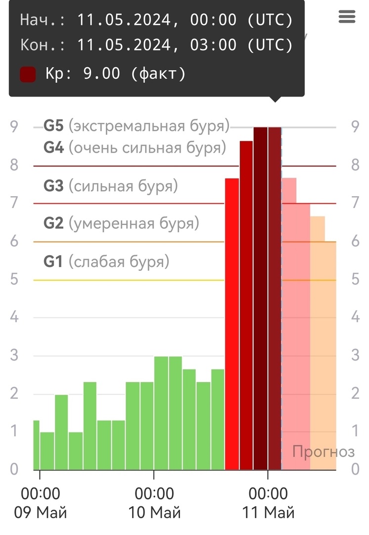 «Впервые за 20 лет геомагнитная буря фактически достигала максимального показателя G5… Это второй по мощности геомагнитный шторм в 21 веке и третий за современную историю наблюдений (за последние 150 лет)!» — сообщают администраторы паблика «Погода в Смоленске и области».
