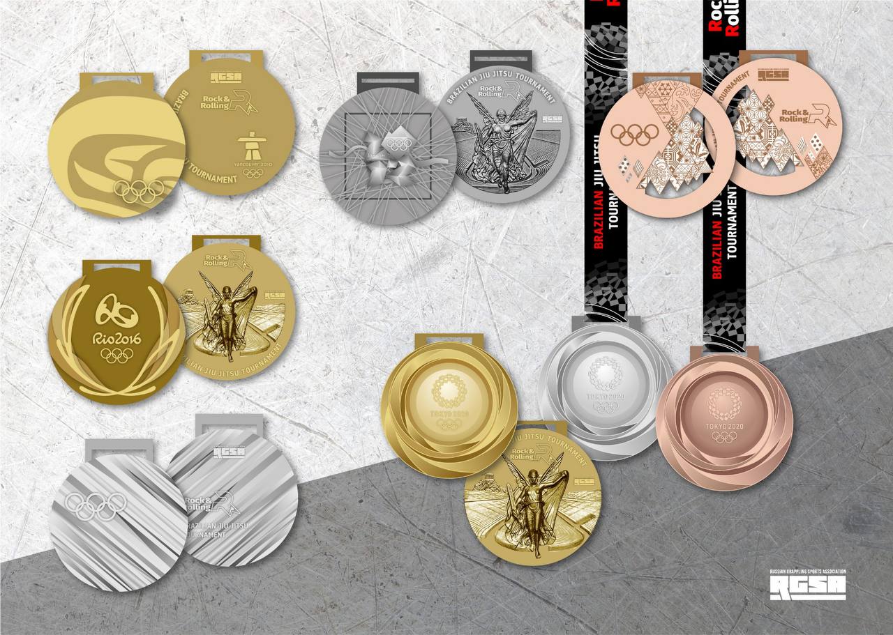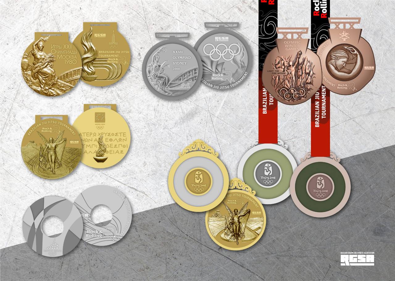 Добавим, что в этом году для турниров по джиу-джитсу была выпущена специальная олимпийская серия медалей Rock&Rolling. Все награды двухсторонние и по дизайну являются полной копией олимпийских медалей с небольшими дизайнерскими вставками.