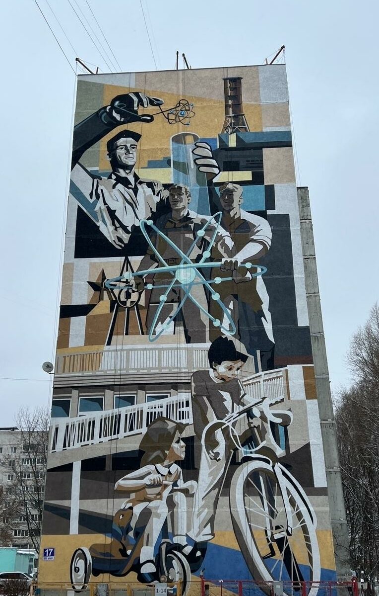 «Очень круто, что получается реализовывать такой масштабный проект в городе Десногорск. Конечно, работать сейчас холодно, но для наших ребят погода не помеха, они хорошо подготовлены. Художники работают в непогоду, чтобы подарить жителям арт-объект, прославляющий труд специалистов АЭС. В итоге получится большой и классный мурал с сюжетом вне времени. Я уверен, он понравится жителям города».