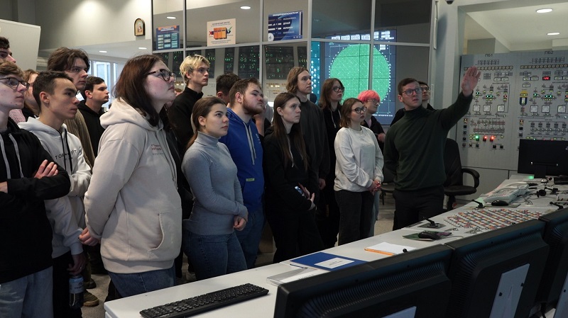 Знакомство с ядерными технологиями продолжилось на полномасштабном тренажере блочного щита управления, используемого для подготовки оперативного персонала. Этот уникальный объект особенно поразил и заинтересовал студентов.