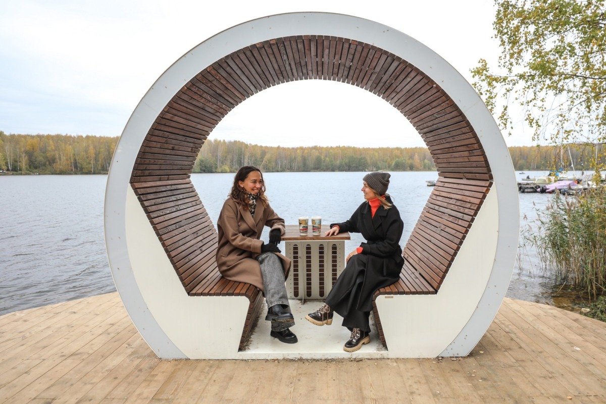 В парке благоустроены уютные локации со скамейками, современный скейт-парк, удобные беседки для барбекю, спортивные тренажёры, смонтированы освещение и подсветка.