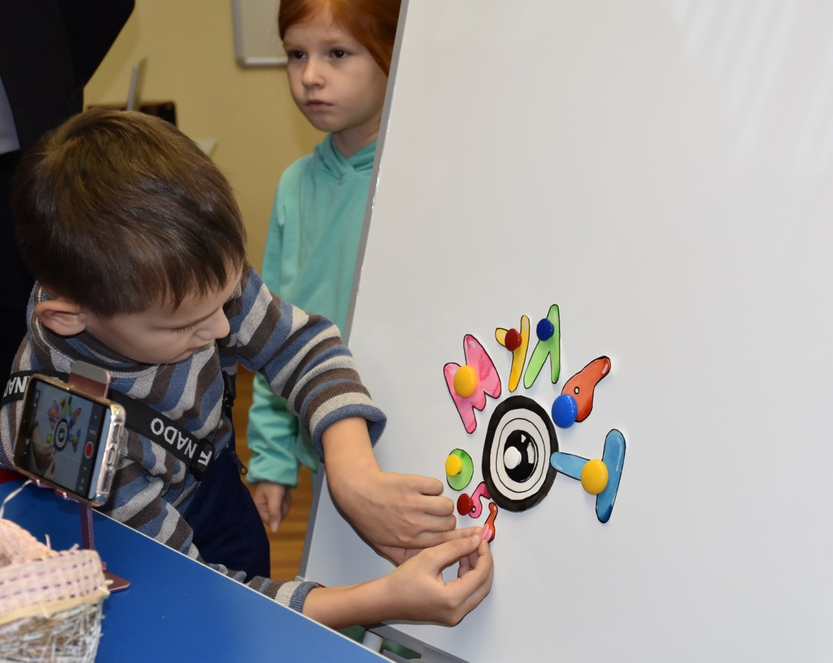 Ребята, присутствовавшие на открытии студии, с интересом рассматривали кабинет с мебелью в оранжево-серых тонах «Школы Росатома» и делились своими желаниями. Кто-то хочет сделать мультфильм про космос и роботов, кто-то мечтает оживить героев из русских народных сказок.