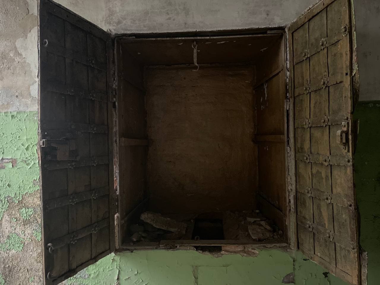 Непосредственно в главном зале раньше находился паркетный пол. Предполагается, что он либо до сих пор располагается под досками, либо его кто-то ранее уже разобрал. Вплоть до сегодняшнего дня он не вскрывался.