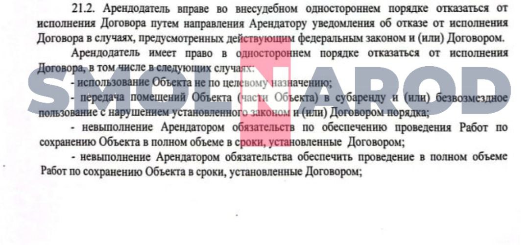 Представители АУИПИК рассказали смолянину, что причиной расторжения стало “невыполнение пункта договора”.