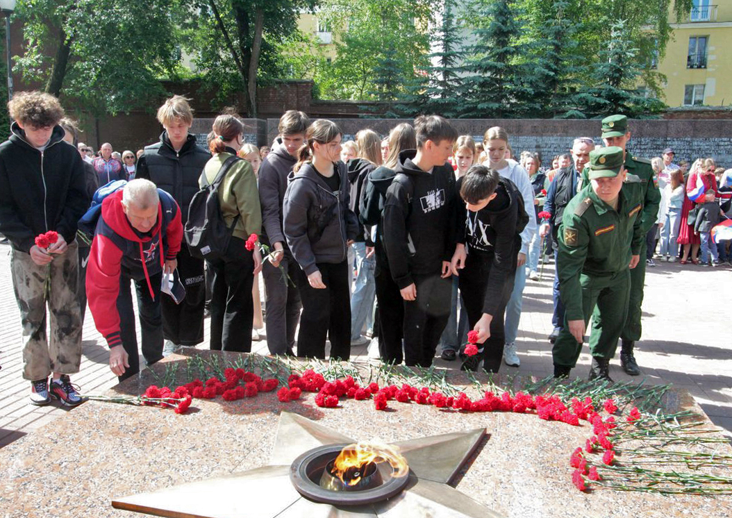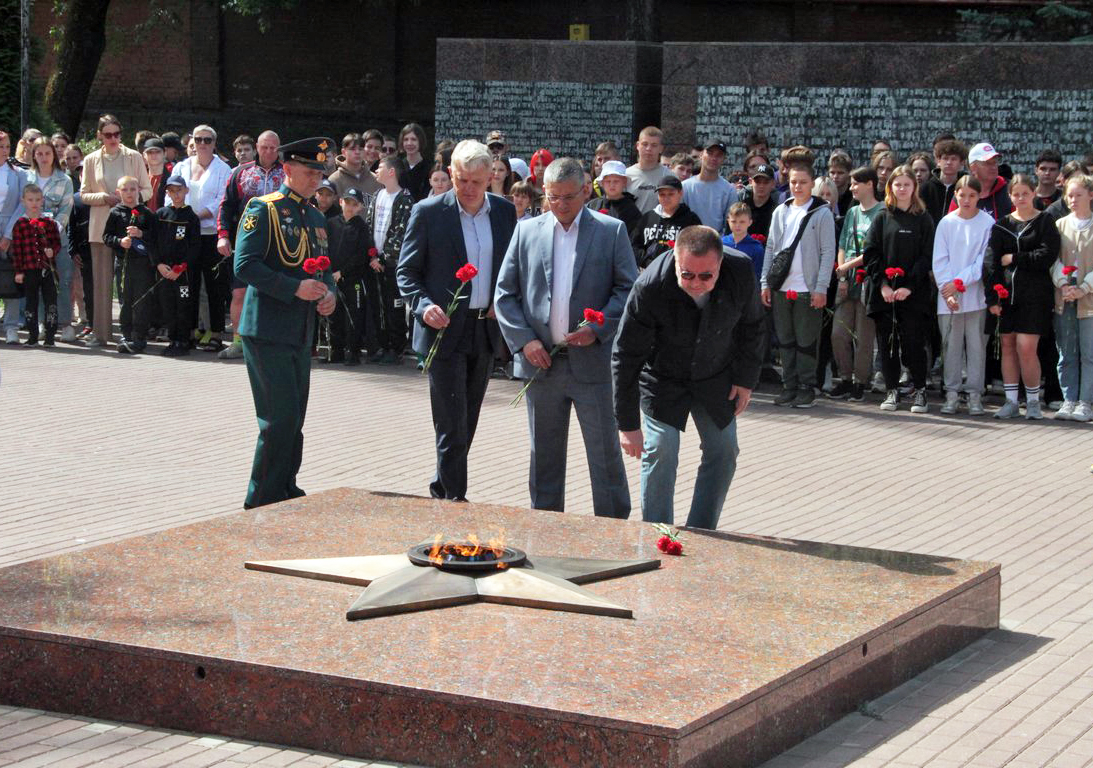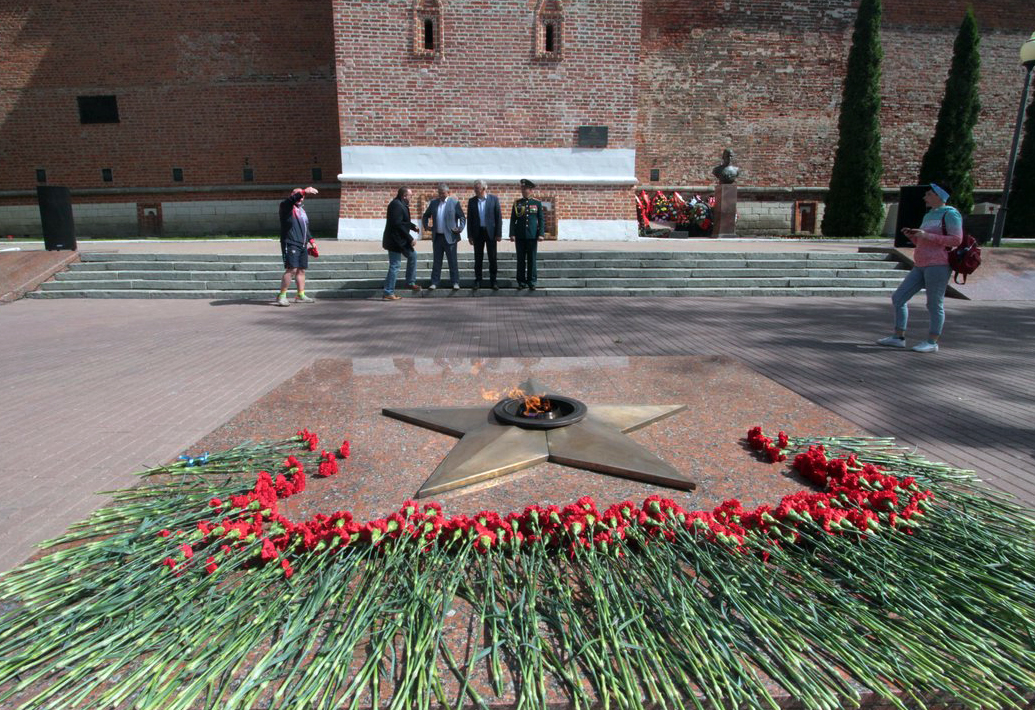 Участники минутой молчания почтили память героев, отдавших жизнь за Россию. Затем к Вечному огню возложили цветы.